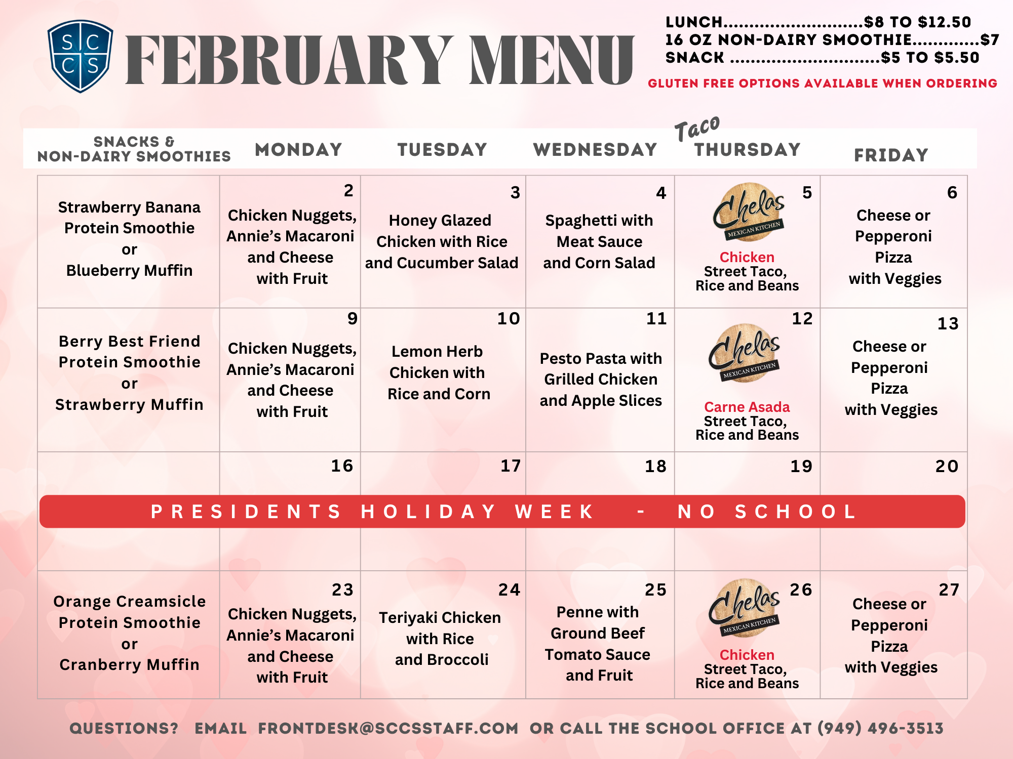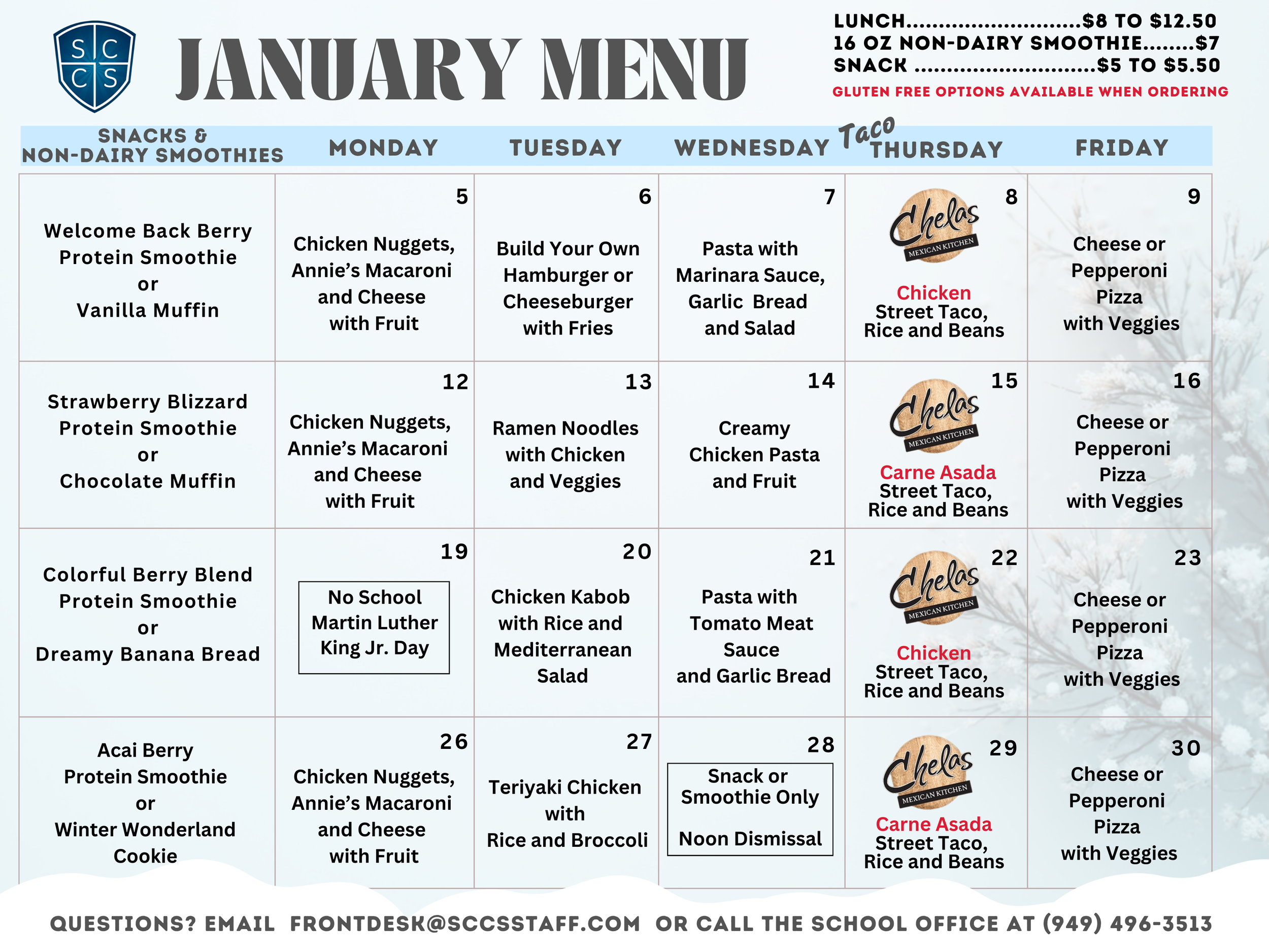 SCCS Optional Daily Lunch Program for January and February